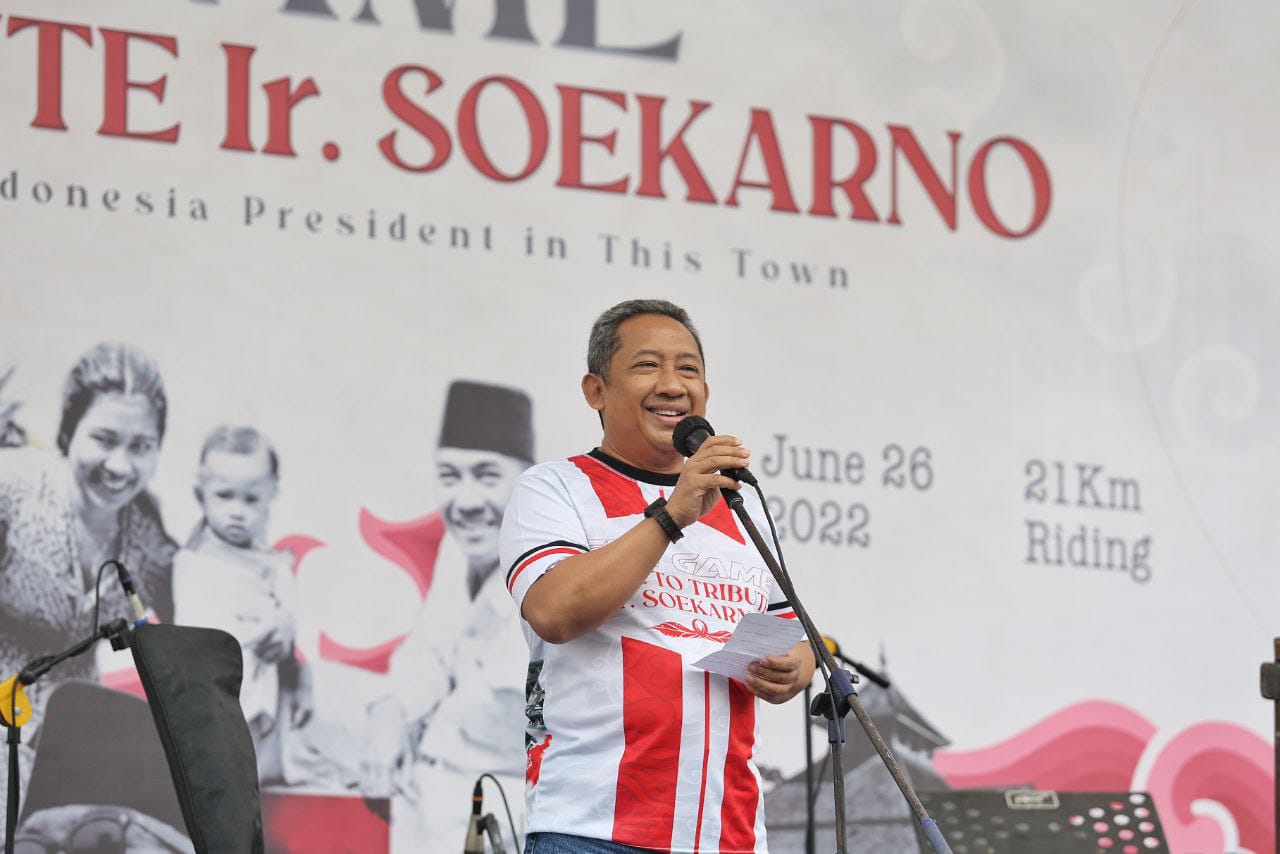 BANDUNG - Sebanyak 500 peserta mengikuti Fun Game Bike to Tribute Ir. Soekarno, Minggu 26 Juni 2022. Para peserta mengayuh sepeda sejauh 21 km dengan rute melewati tempat-tempat bersejarah yang berhubungan erat dengan Ir. Soekarno di Kota Bandung.