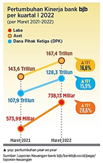 Hal ini dapat dilihat dari pertumbuhan laba kotornya yang sebesar Rp2,6 triliun. Dengan pertumbuhan interest income 21,6%, pertumbuhan fee based income sebesar 39,3%, yang bersumber dari digital channel sebesar 40% secara tahunan. Total aset bank bjb juga tumbuh 12,4% menjadi Rp158,4 triliun. Dengan nilai total aset tersebut, bank bjb menjadi bank pembangunan daerah terbesar di Indonesia, atau masuk ke dalam 14 besar di industri perbankan nasional. Lalu, dana pihak ketiga (DPK) bank bjb turut tumbuh 14,3% menjadi Rp121,6 triliun. Tumbuh di atas rata-rata industri perbankan yang hanya 12,2%. Penyaluran kreditnya juga tumbuh hingga 7,4% atau menjadi sebesar Rp102,2 triliun, tumbuh di atas rata-rata industri perbankan yang hanya 5,2%.